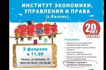 Институт экономики, управления и права 2 февраля (воскресенье) проводит день открытых дверей.Приглашаем учеников 9-11 классов к 11 часам в новый корпус института по адресу ул. Зайцева, 15 (ост. автовокзал). Есть бюджетные места.Наш сайт www.ieml.ruМожно задать вопросы по электронной почте tatyanadoctor@gmail.comС уважением, профессор Галиуллина Татьяна Николаевна -