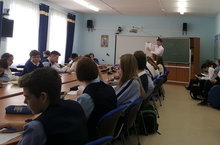 В рамках реализации программы "Здоровье и здоровый образ жизни" представитель НИИ гигиены и охраны здоровья детей и подростков А.А. Талан провела деловую игру с учашимися 7 классов "Азбука Здоровья"