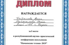 Республиканская научно-исследовательская конференция школьников «Камаевские чтения- 2019» 10.04.2019