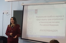 Сегодня 25 февраля в рамках профориентационной работы в лицее прошлав встреча с специалистом-экспертом отдела надзора по гигиене детей и подростков Управления Роспотребнадзора по Республике Татарстан Мурадимовой Лилией Айдаровной.