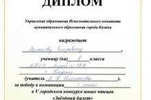 Поздравляем Романову Елизавету победителя V городского конкурса юных чтецов "Звездный билет", проходящего в рамках республиканского конкурса "Живая классика"