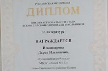 Поздравляем нашего призера Всероссийской олимпиады школьников по литературе Искандарову Дарью с достойным выступлением. Молодец!
