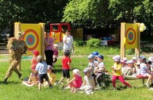 После завтрака все дети вышли на украшенную цветными флажками и шарами площадку, где их ждали развлечения.