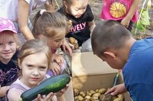 Наступила волшебница-осень, позолотила листья деревьев, одарила людей щедрым урожаем фруктов и овощей. С большой радостью дети собирали свой урожай. Ребята нашего детского сада очень хорошо знают, что осень – прекрасная пора для сбора урожая. Ведь они сами, вместе с воспитателями все лето ухаживали за растениями в огороде: поливали, пололи, рыхлили. И огород их порадовал неплохим урожаем: свекла, лук, укроп, салат, томаты, картофель, кабачки, подсолнух.