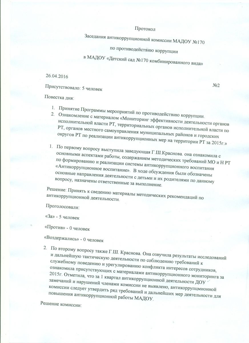 Протокол заседания антикоррупционной комиссии №2