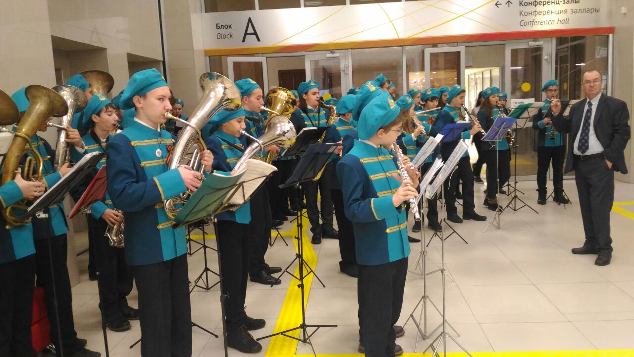 Опубликовано: 15.11.2016Детский духовой оркестр "ДМШ №13" г. Казани выступил на подведении итогов Второго Республиканского конкурса "Школьный экопатруль", которое состоялось 15 ноября 2016г. в Деревне Универсиады./upload/storage/org5614/files/IMG_4256.JPG