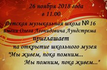 26 ноября 2018 года в 11.00 состоится открытие школьного музея "Мы живем, пока помним... Мы помним, пока живем..."