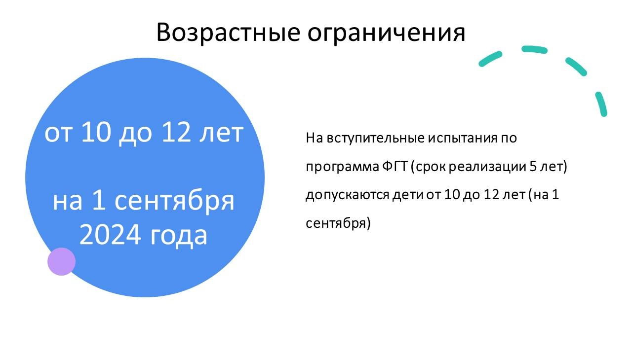 На конкурсной основе принимаются лица, достигшие 10-12 лет ( на начало учебного года 1.09.2024 г.)