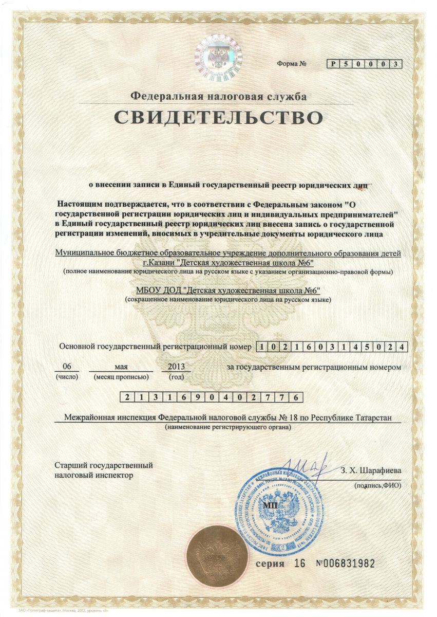 Муниципальное бюджетное учреждение дополнительного образования "Детская художественная школа №6" г. Казани