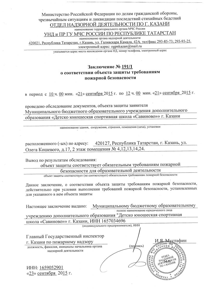 ЗАКЛЮЧЕНИЕ №191/1 СООТВЕТСТВИИ ОБЪЕКТА ЗАЩИТЫ ТРЕБОВАНИЯМ ПОЖАРНОЙ БЕЗОПАСНОСТИ.jpg