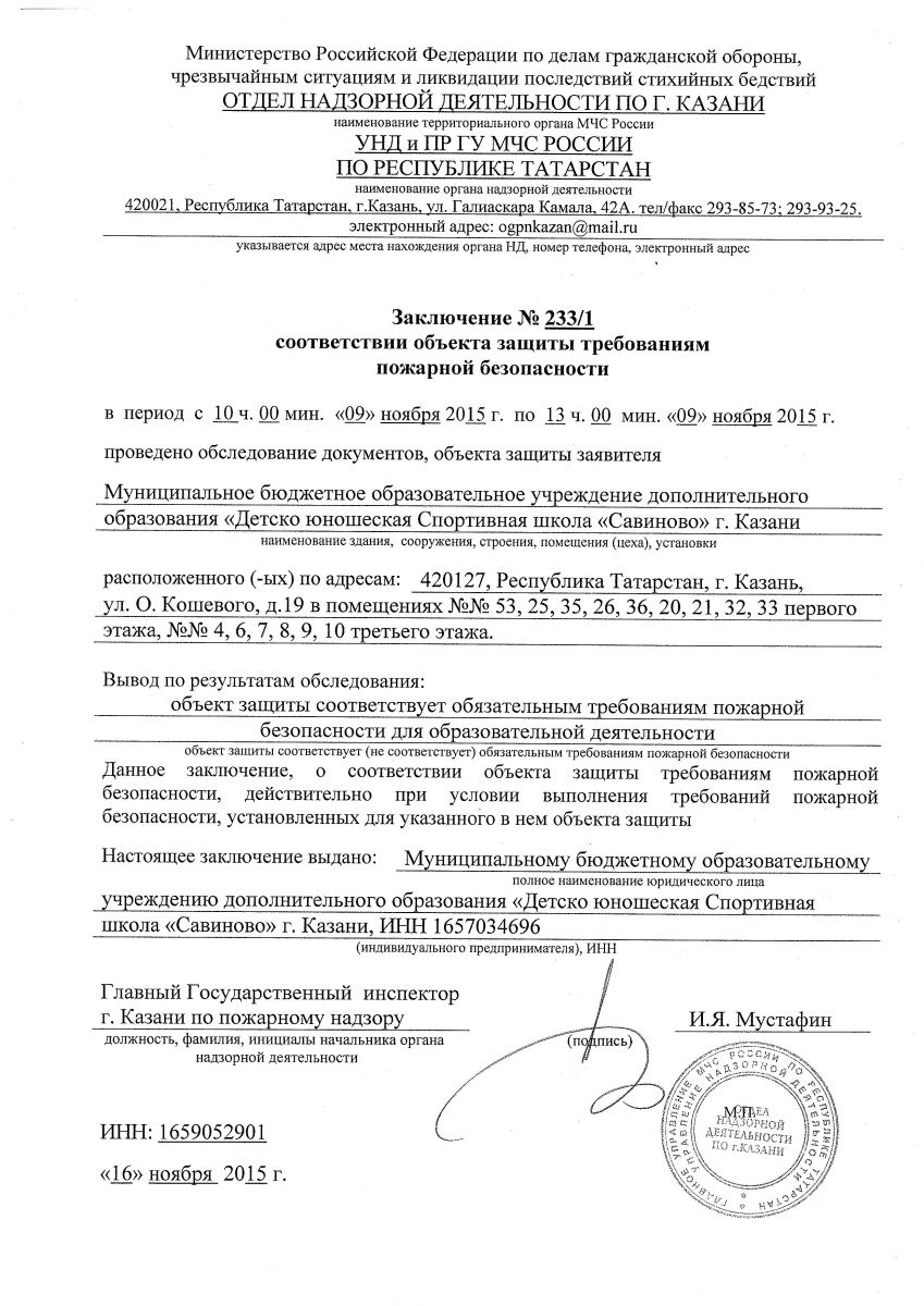 ЗАКЛЮЧЕНИЕ №233/1 СООТВЕТСТВИИ ОБЪЕКТА ЗАЩИТЫ ТРЕБОВАНИЯМ ПОЖАРНОЙ БЕЗОПАСНОСТИ.jpg