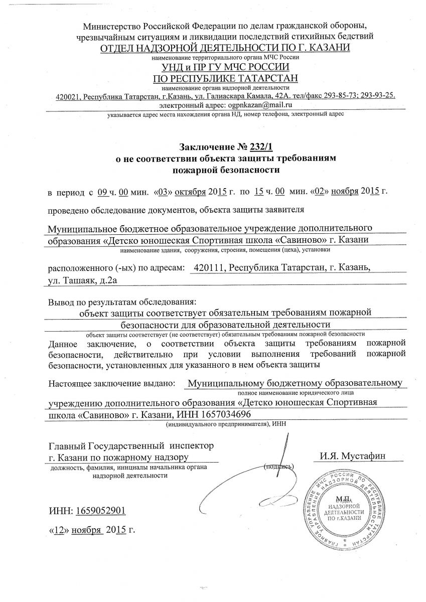 ЗАКЛЮЧЕНИЕ №232/1 СООТВЕТСТВИИ ОБЪЕКТА ЗАЩИТЫ ТРЕБОВАНИЯМ ПОЖАРНОЙ БЕЗОПАСНОСТИ.jpg