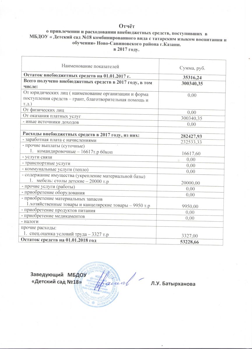 Отчет о привлечении и расходовании внебюджетных средств за 2017 год