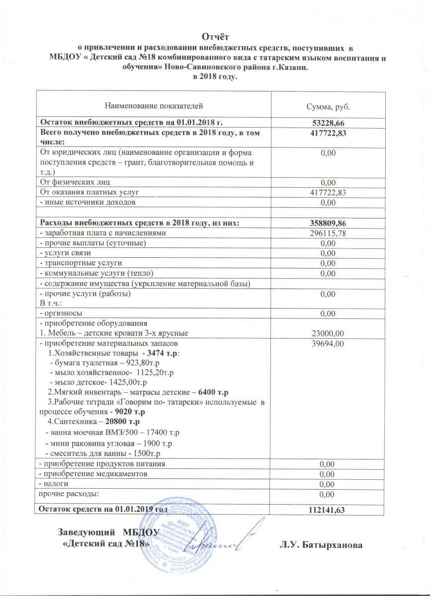 Отчет о привлечении и расходовании внебюджетных средств за 2018 год