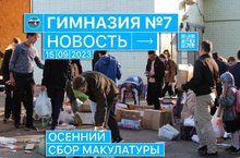 15 сентября «Гимназии №7» состоялся первый в этом учебном году сбор макулатуры! 20.09.2023