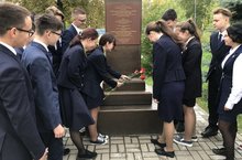 Сегодня в рамках городского проекта «Неделя добра» в Гимназии прошла акция «Путь к обелиску». Ученики 10 а класса возложили цветы памятнику Героя России А.В.Козину.