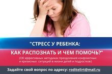 Республиканское родительское Интернет-собрание состоится 16 февраля в 12.00. Тема: "Стресс у ребенка: как распознать и чем помочь?