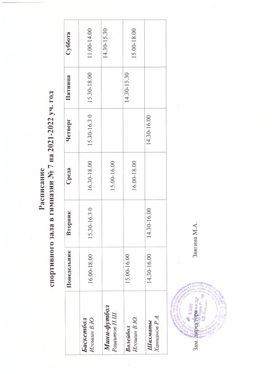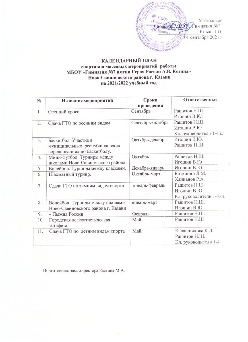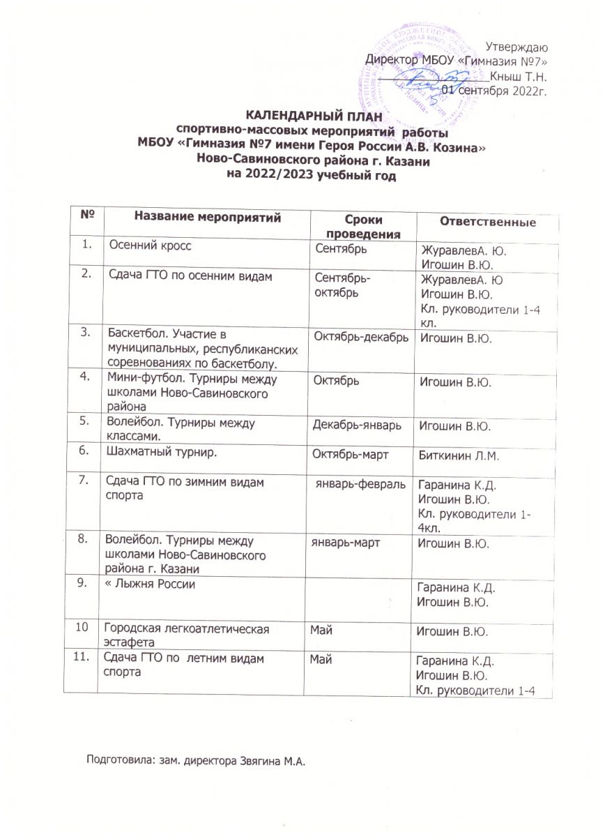 Календарный план спортивно-массовых мероприятий гимназии