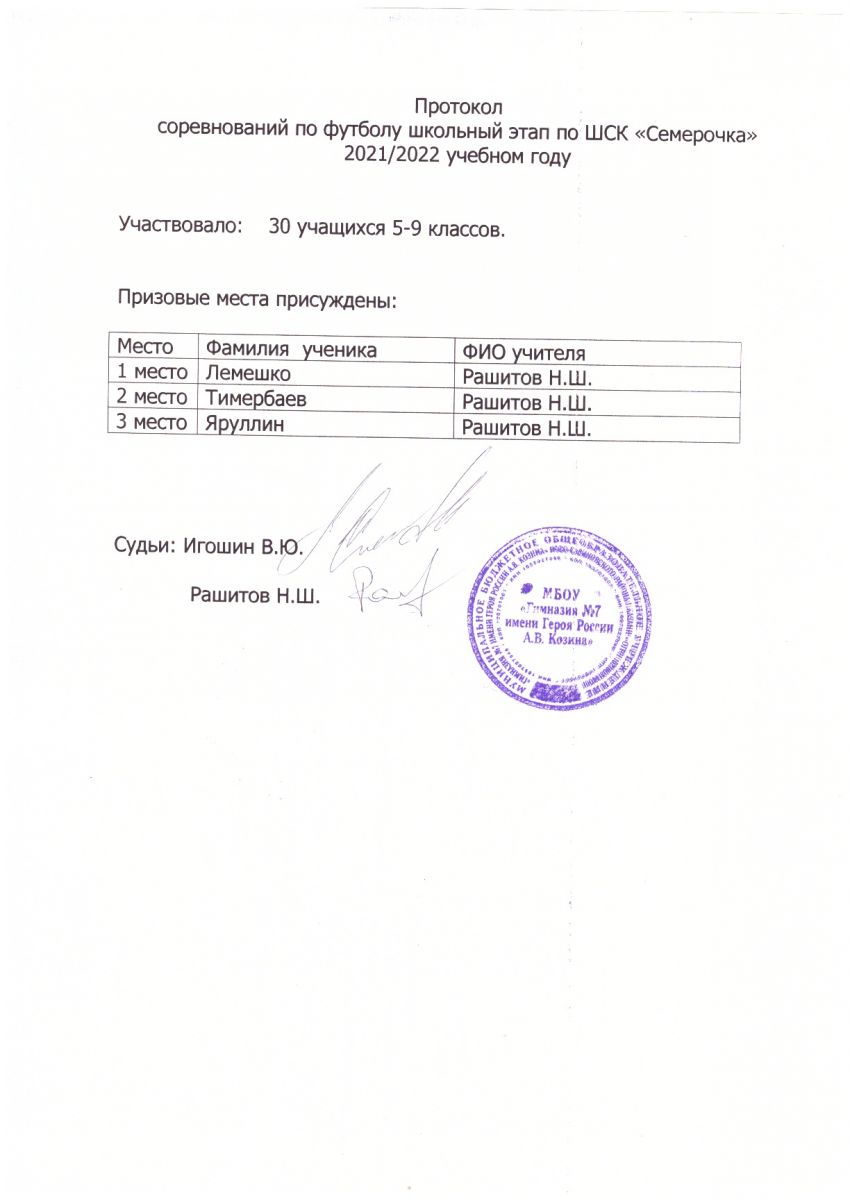 Протокол соревнований по футболу
