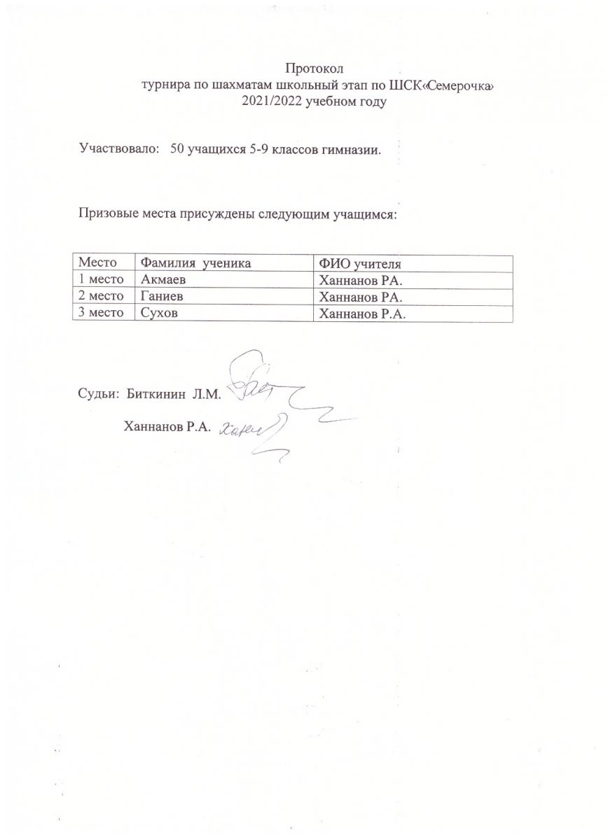 Протокол соревнований по шахматам