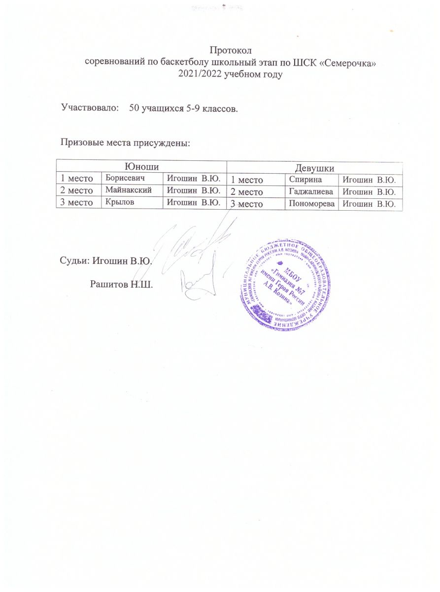 Протокол соревнований по баскетболу