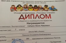 Сабиров Эмиль, ученик 2В класса, (учитель Плясина Елизавета Владимировна) стал победителем на очной городской олимпиаде по литературе.