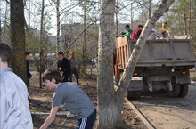 Начиная с 13 апреля наша школа ежедневно принимает участие в уборке территории школы и сквера на Амирхана, 2.