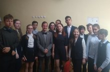 Школьные команды «Умные бочонки» и «Спектр», приняли участие в пресс-конференции и встрече со знатоком клуба "Что? Где? Когда?" Борисом Белозеровым
