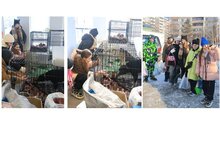 Ата-аналар белән бергә балалар этләргә азык алып килгәннәр.