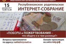 15 декабря в 12 часов состоится Республиканское родительское интернет-собрание "Поборы и пожертвования - что общего и в чем разница?"