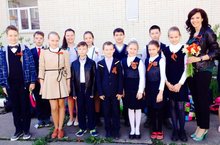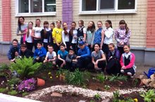 Ученики и родители 5а класса оформили цветочную клумбу у входа в школу