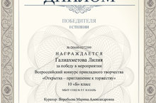 Поздравляем ученицу 10Б класса Галиахметову Лилию с победой во Всероссийском конкурсе «Открытка – приглашение к торжеству».