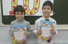 Бәйрәм ахырында 4 нче сыйныф укучылары үзләренең кечкенә дусларына кулдан ясалган бүләкләрен тапшырдылар.