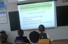 В рамках подготовки к проведению Мирового чемпионата по профессиональному мастерству по стандартам "WorldSkills" в Казани классный руководитель 8 класса Низамова Л.Г. провела урок "WorldSkills Kazan 2019". Особое внимание на уроке уделялся популяризации различных профессий, вовлечению подростков в волонтёрскую деятельность.
