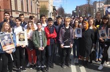 9 нчы май көнне шәһәр үзәгендә Бөек Җиңүгә багышланган «Үлемсез полк» акциясендә безнең гимназия укучылары һәм укытучылары да катнашты. Бөек Ватан сугышында катнашкан якыннарының портретларын күтәргән 163 мең кешелек колонна составында, Карл Маркс урамыннан башлап, Лобачевский, Кремль урамнары аша Ярминкә мәйданына таба атлаган һәрберебезнең күңелендә горурлык хисе ташый, йөзләребезне шатлык елмаюы бизи иде.
