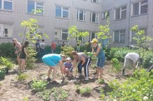 В гимназии №13 проводят акцию "Укрась свою планету". Учащиеся гимназии совместно с учителями вышли на посадку цветов.