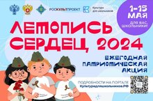 С 1 по 15 мая 2024 года в рамках межведомственного культурно-образовательного проекта «Культура для школьников» пройдет Всероссийская ежегодная патриотическая акция «Летопись сердец», которая в этом году посвящена детской литературе и кинофильмам для детей о Великой Отечественной войне.