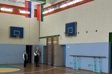 По традиции, учебную неделю начинаем с поднятия флагов РФ и РТ, исполнения государственных гимнов. На этой неделе честь поднятия флагов РФ и РТ была предоставлена ученикам 5Б класса Сафину Кариму и Пугиной Инессе. -