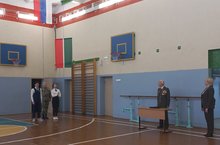 Яңа уку атнасын Россия Федерациясе һәм Татарстан Республикасы флагларын күтәрү, гимнарын җырлау белән башлап җибәрдек. Аннан соң сүз, гимназиягә кунак булып килгән, Яңа-Савин районының Ветераннар Советы Рәисе урынбасары, сугыш ветераны, отставкадагы полковник Шакиров Расих Халик улы килгән иде.