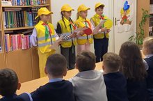 Ученики 4А класса посвящают первоклассников в ряды Юных инспекторов движения.