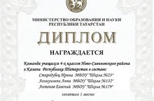Поздравляем ученицу 4Б класса,Стародубец Ирину, с победой в республиканском туре XV Всероссийского интеллектуального командного марафона учеников-занковцев. Молодец!!!