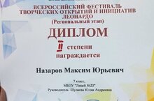Максим подготовил проектную работу на тему: "Макет современного торгового центра с автоматизированной системой оплаты", достойно выступил и занял призовое 2 место! Поздравляем!7А сыйныф укучысы Назаров Максим «Леонардо» иҗади ачышлар һәм инициативалар конкурсының чираттагы этабында катнашты. Конкурсантларны тыңлау 2023 елның 18 февралендә Гимназия 179-мәгариф үзәге адресы буенча узды. Максим "Автоматлаштырылган түләү системасы белән заманча сәүдә үзәгенең макеты" дигән темага проект эше әзерләде, лаеклы чыгыш ясады һәм призлы 2 урынны алды! Котлыйбыз!