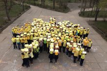 Сегодня ученики нашей школы провели флешмоб "Мы - наследники Великой Победы!". На территории школы была образована живая фигура изображающая солнце - символ мира, добра и надежды.