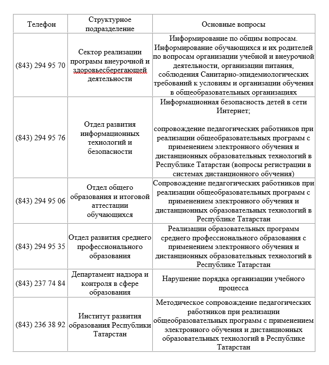 Телефоны «горячей линии» по организации обучения в электронной информационно-образовательной среде