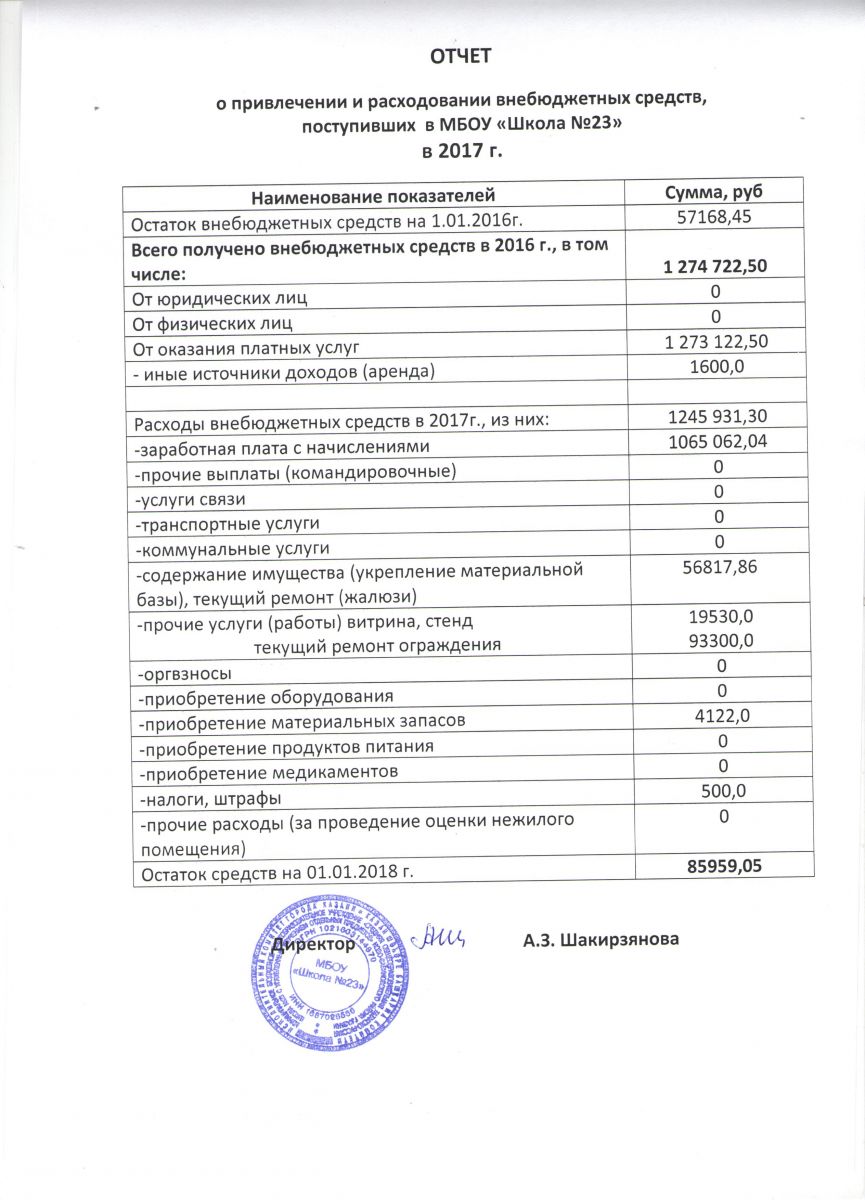 Отчет о привлечении и расходовании внебюджетных средств в 2017