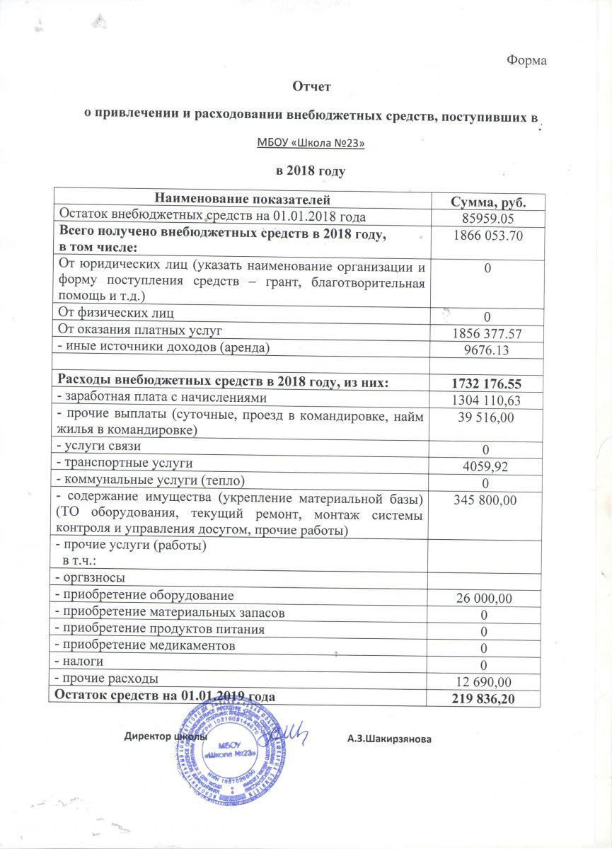 Отчет о привлечении и расходовании внебюджетных средств в 2018