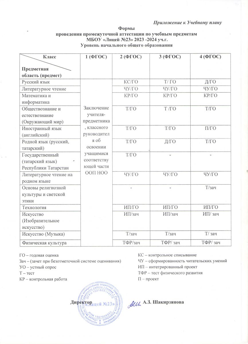 Учебный план на уровень начального общего образования на 2023-2024 уч.г. Приложение к УП НОО 2023