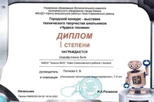 I степени(Руководитель Попкова Е.В. ) в городском конкурсе технического творчества школьников "Чудеса техники",в номинации "Начальное техническое моделирование" -