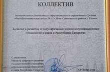 Поздравляем коллектив МБОУ "ШКОЛА 31" Ново-Савиновского района г.Казани с получением благодарственного письма от министра цифрового развития государственного управления информационных технологий и связи РТ Хайруллина А.Р.