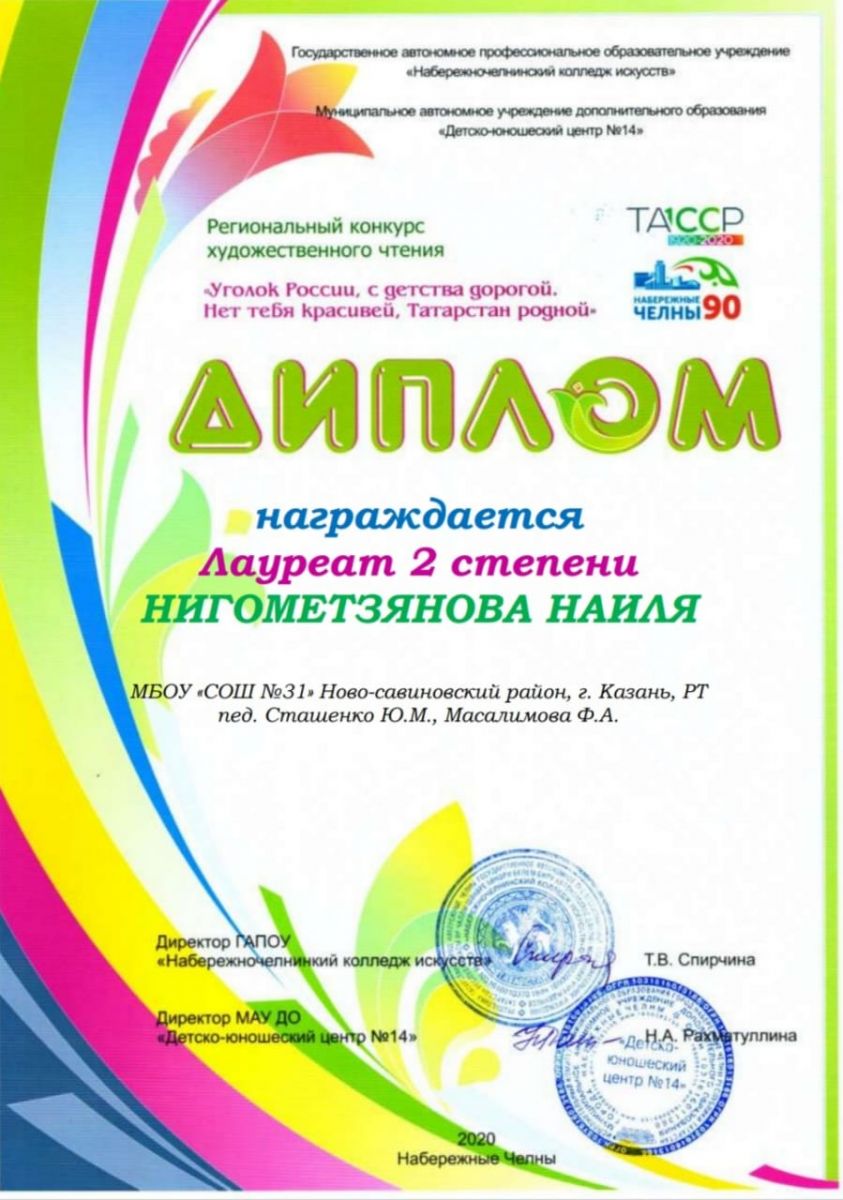 Она стала лауреатом 2 -ой степени в региональном конкурсе художественного чтения.